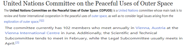 COPUOS - The abbreviation for ‘United Nations Committee on the Peaceful Uses of Outer Space’ is a group where discussions are made on issues of Space exploration.
